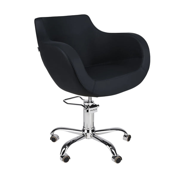 Ayala Thomas 01 P-7 Scaun de Coafor Negru cu Bază pe Roți Argintii