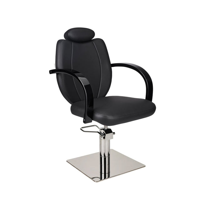 Ayala Toledo 01 P-7 Scaun de Coafor cu Tetieră, Cotiere Lăcuite Negru și Bază Pătrată Argintie
