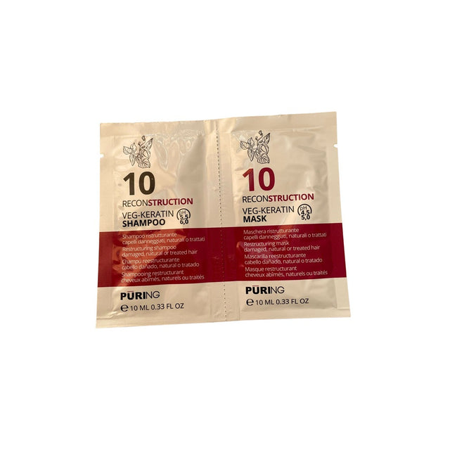Puring Set Reconstrucție Intensivă – Șampon și Mască cu Cheratină Vegetală pentru Păr Deteriorat, Natural sau Tratat mostră 2x10ml
