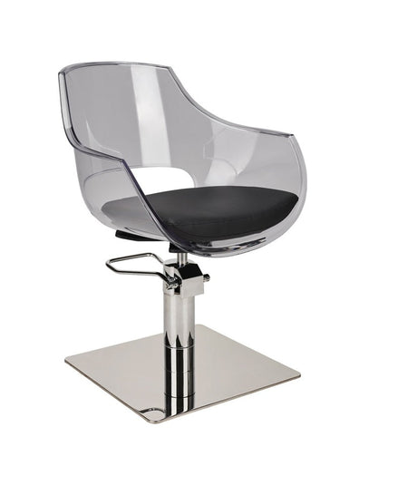 Ayala Ghost 01 – Scaun de Coafor Transparent cu Bază Pătrată Argintie