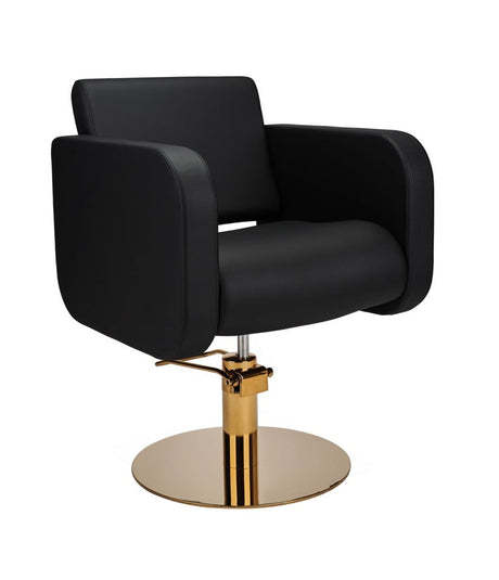 Ayala Holly C1 P-7 Scaun de Coafor Negru cu Cusături Aurii și Bază Pătrată Neagră