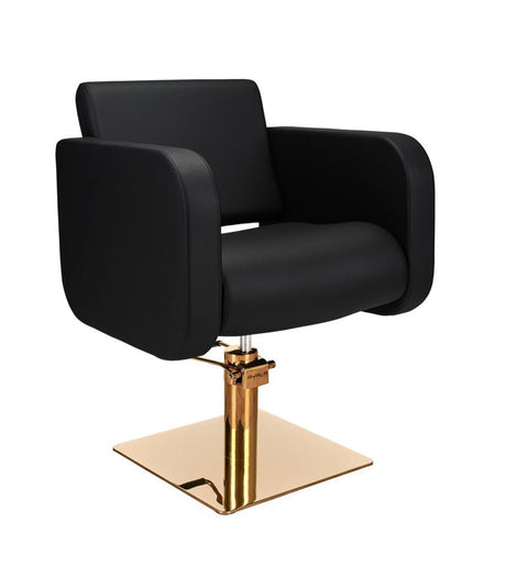 Ayala Globe G1 P-7 – Scaun de Coafor Negru cu Cusături Negre și Bază Pătrată Aurie