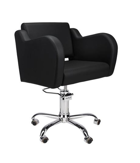 Ayala Holly 01 P-7 Scaun de Coafor Negru cu Cusături Fine Negre și Bază pe Roți Cromate