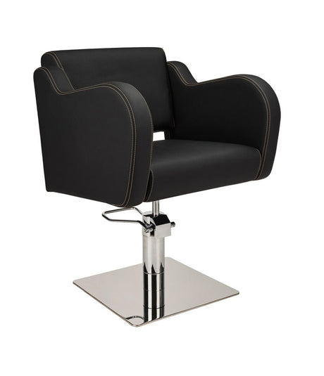Ayala Holly 01 P-7 Scaun de Coafor Negru cu Cusături Fine Negre și Bază Pătrată Cromată
