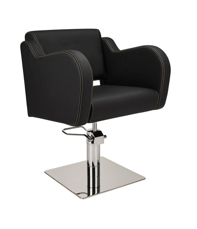 Ayala Holly 01 P-7 Scaun de Coafor Negru cu Cusături Aurii și Bază Pătrată Cromată Argintie